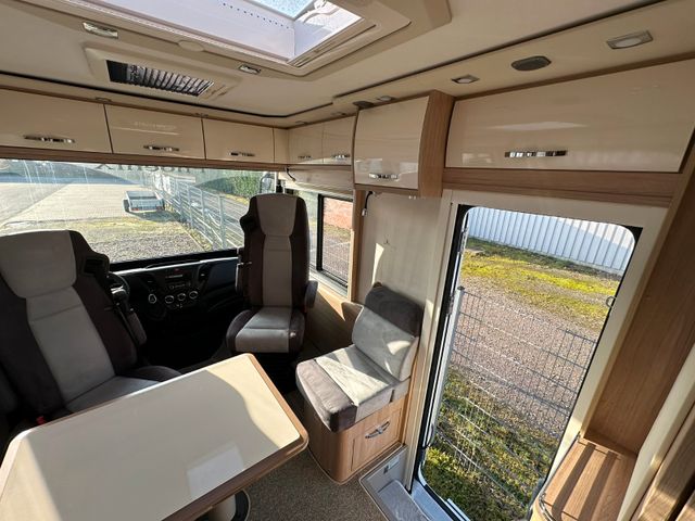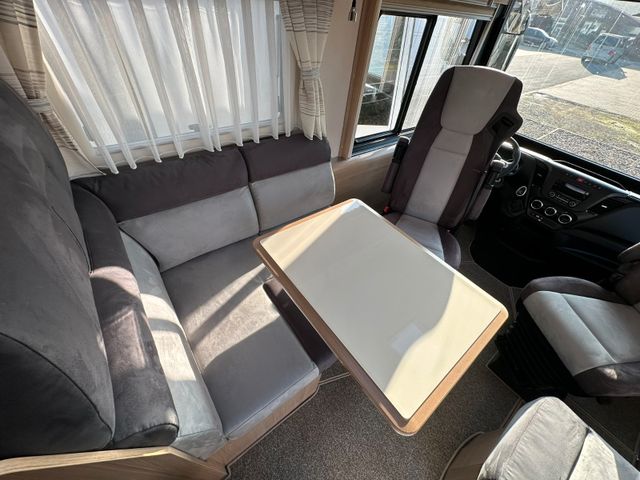 Bereitstellungsgebühr Iveco (inkl. Kfz-Brief, vollem Diesel- und Ad-Blue-Tank), Garagentüre 75 x 130 cm auf der Fahrerseite anstelle 65 x 65 cm (B x H), Wandlerautomatik-Getriebe Hi-Matic mit 8 Schaltstufen, Fahrer- und Beifahrersitz als Luftschwingsitze Luxus-Variante Bezug Stoff, Panorama-Dachfenster (HEKI 3) anstelle Midi-HEKI über der Sitzgruppe, Verdunkelungsplissee für Windschutzscheibe,, Kompressor-Kühlschrank 195 l einschl. sep. 44 l Tiefkühlfach, Midi-Elektro-Power-Paket mit Batterie 210 Ah (anstelle 120 Ah Batterie),, Separate Entlüftung für Abwassertank über Dach, Abwassertank ca. 230 l anstelle Serien-Abwassertank ca. 115 l (Midi-Klasse), Gas-Backofen Luxusausführung (anstelle Geschirrauszug), Gas-Außensteckdose, Keramik-Toilette mit Festtank (ca. 115 l), Frischwasser-Tank (ca. 115 l) = 345 l FW, Heizkreislauf im Bereich des Heckbettes,, Dämmerlichtpaket, stylX fantasy (Frontbereich/Heckbereich/Eckleuchten) Fronten in hochglanz weiß, stylX fantasy Marmor (= hell) für Midi-Modelle, Möbelkorpus Dekor Tiberino-Nuss für Midi-Klasse, Wohnkomfort-Paket bestehend aus: , Motorwärmetauscher und Motorvorwärmpumpe,, Wohnraumteppich, Baldachin für Heki über der Sitzgruppe, Tisch absenkbar mit Polster, Polstersatz Modell 7700 L Denver 143 + 144, Gardinensatz Bayeuth beige/silber; Voile Batist natur, Lenkrad in Höhe und Neigung verstellbar, Chassispaket 2 für lveco Daily Midi-Liner: , Motor 3,0 l mit 207 PS anstelle 160 PS, Anhängersteckdose12 Volt 13 polig, Auflastung 5,8 to, Vollluftfederung mit Autolevelfunktion, 170 l Kraftstofftank anstelle 90 l, Differenzialsperre, verstärke Klimaanlage Fahrerhaus