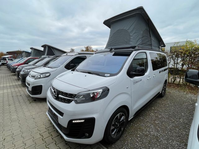 Vielseitigkeit: Der Opel Flex Crosscamp ist mehr als nur ein Transportmittel – er verwandelt sich im Handumdrehen in ein komfortables Campervan, der sich deinen Bedürfnissen anpasst. Tagsüber ein praktisches Familienfahrzeug, nachts ein gemütliches Schlafzimmer., Modernes Design: Mit seinem modernen und robusten Design macht der Flex Crosscamp sowohl in der Stadt als auch auf unbefestigten Straßen eine gute Figur. Das elegante Außendesign wird durch einen geräumigen Innenraum ergänzt, der keine Wünsche offen lässt., Komfort auf Reisen: Der 2024 Flex Crosscamp kommt mit einer voll ausgestatteten Küche, einem komfortablen Schlafbereich für bis zu 4 Personen, praktischen Stauraumlösungen und einer Standheizung für kalte Nächte. Alles, was du brauchst, um dich unterwegs wie zuhause zu fühlen.