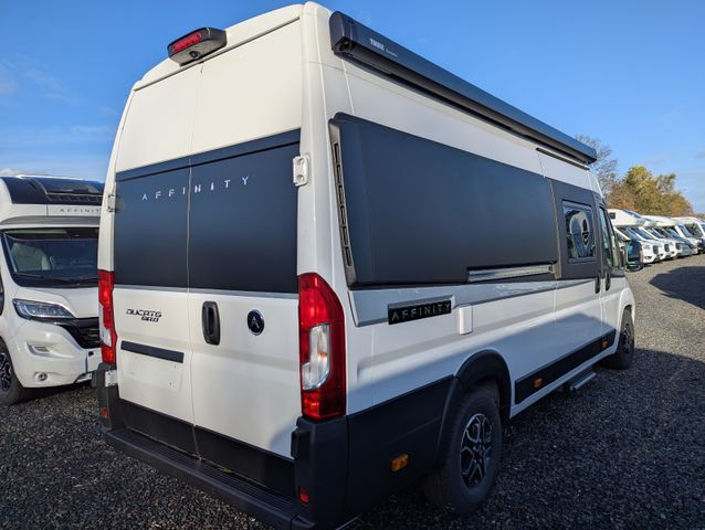 Der Affinity Camper Van verfügt über einen komfortablen Wohnraum für bis zu vier Personen. Die Möglichkeit der flexiblen Konfiguration erlaubt es, das Fahrzeug an verschiedene Bedürfnisse der Benutzer anzupassen, von zwei Reisenden bis hin zu einer vierköpfigen Familie. Er wurde auf der Grundlage des größten Kleintransporters im Angebot von Fiat und Peugeot gebaut und so entworfen, dass er im Inneren möglichst viel Raum bietet.Die außergewöhnliche Raumaufteilung, große Dachfenster, angenehme und diffuse Beleuchtung, moderne Materialien und die attraktive Farbgebung der Möbel schaffen zusammen einen freundlichen und geräumigen Innenraum.