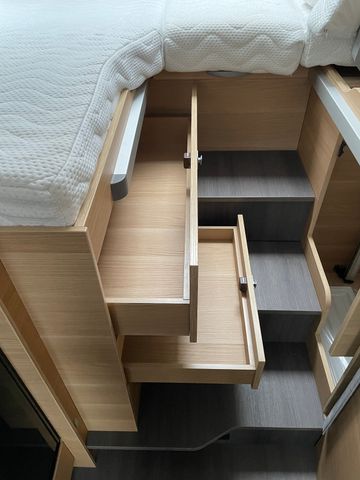 Nebelscheinwerfer, Lenkrad und Schaltknauf in Teilleder, Falt-Verdunkelung Fahrerhaus, Fliegenschutz an Wohnraumtür, Zentralverriegelugn, Fenster und Abfalleimer an Wohnraumtür, Lade-Booster (für optimale Ladung während der Fahrt), Gasfilter, TFT-Halterung, Kurbelstützen hinten