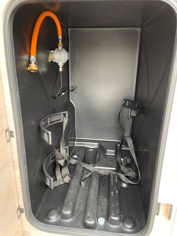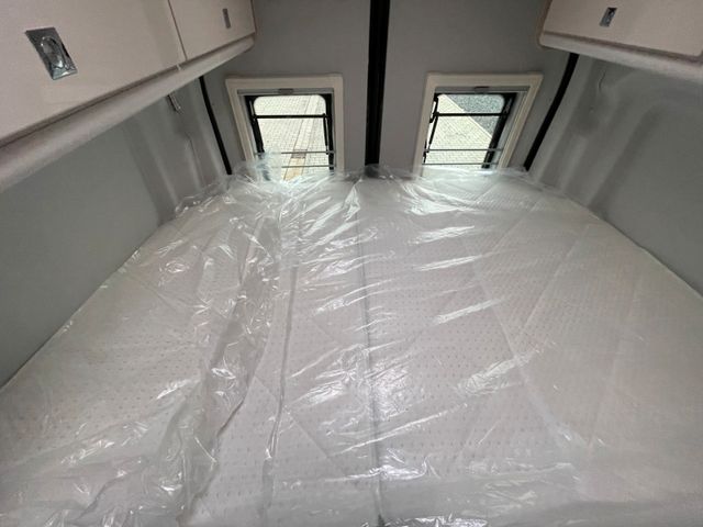 Dachhaube im Schlafbereich mit Verdunkelungsrollo und Fliegenschutz, Fenster im Toilettenraum, Alurahmenfenster ausstellbar, Hecktüren mit beheizter Fensterverglasung
