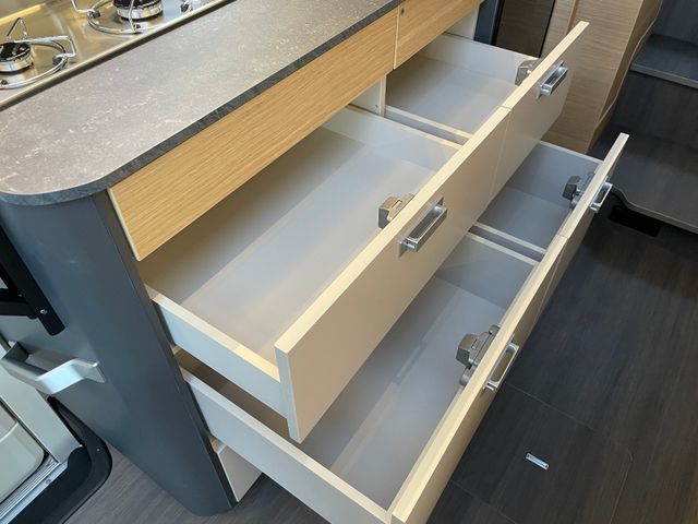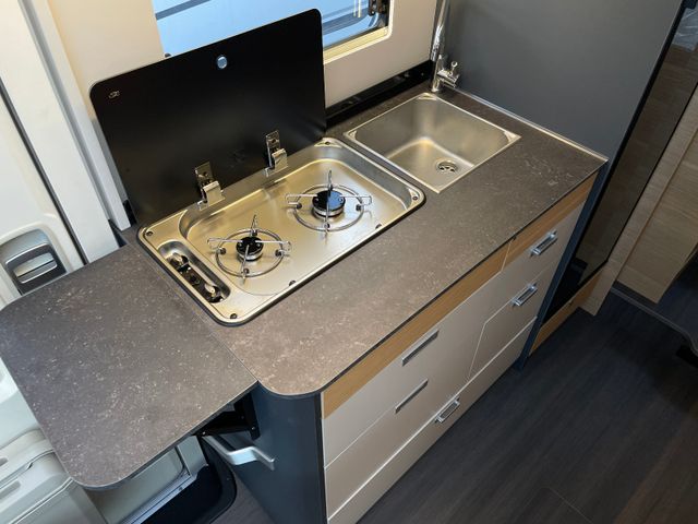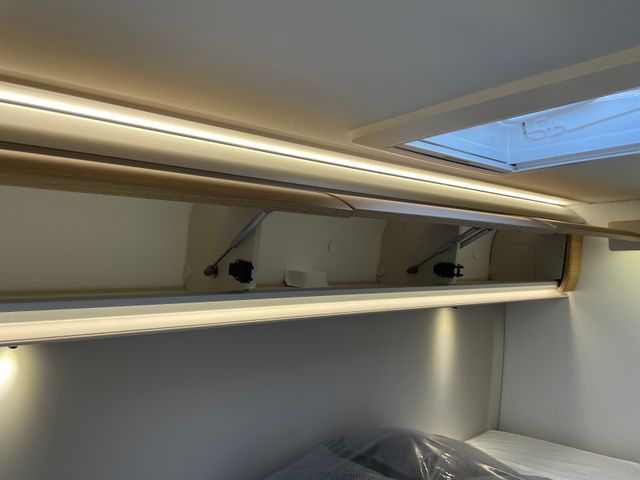 Isofix Kindersitzbefestigung Rückbank, Einparkhilfe hinten, DAB-Radio-Vorbereitung FH, Kurbelstützen hinten, Falt-Verdunkelung FH, Panorama-Dachhaube Front, Federkern-Matratze auf Festbett(en), Ladebooster, TFT-Halterung, Gasfilter