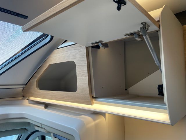 L-Dinette, Feuerlöscher, Zentralverriegelung, Abfalleimer und Fenster Wohnraumtür, Panorama-Dachfenster Front