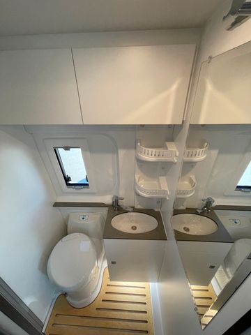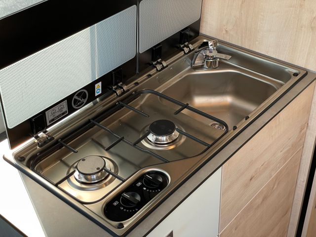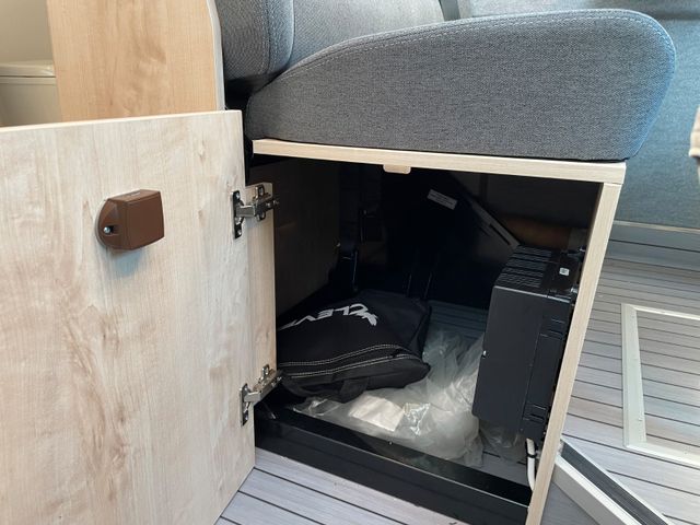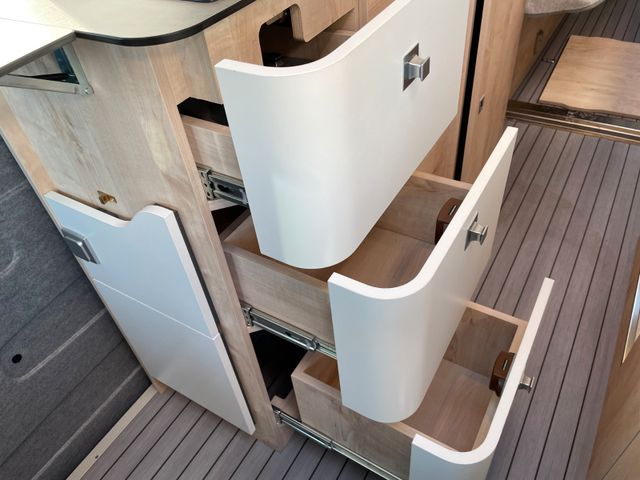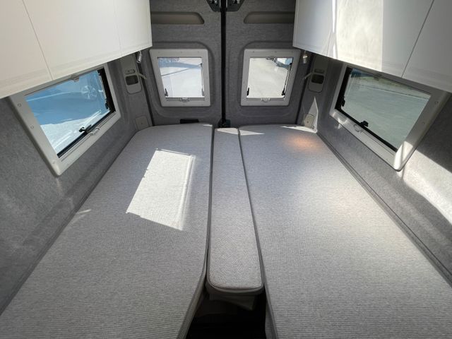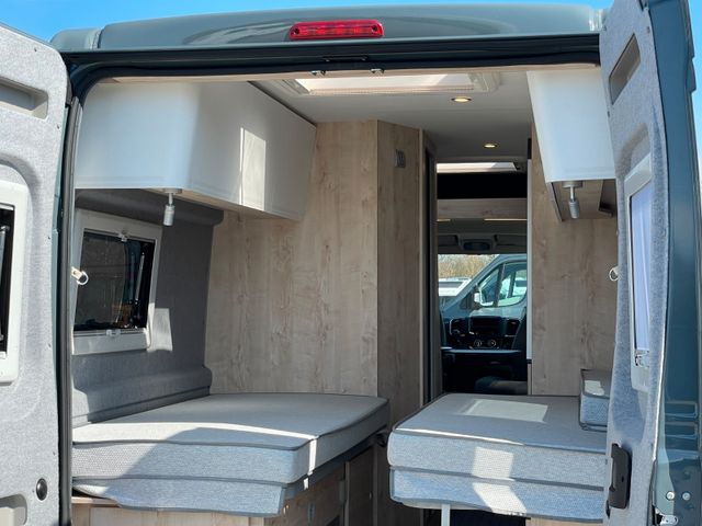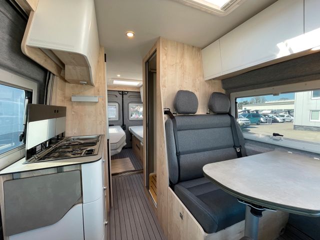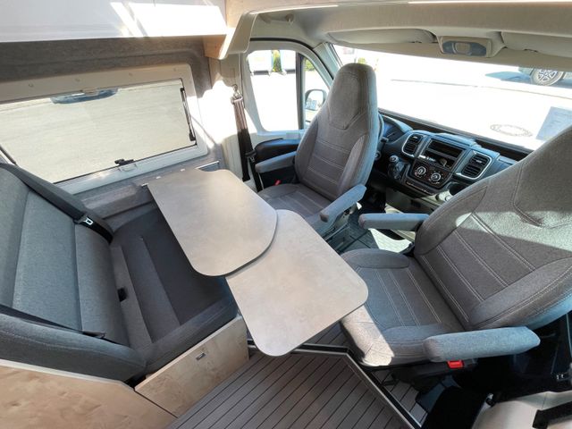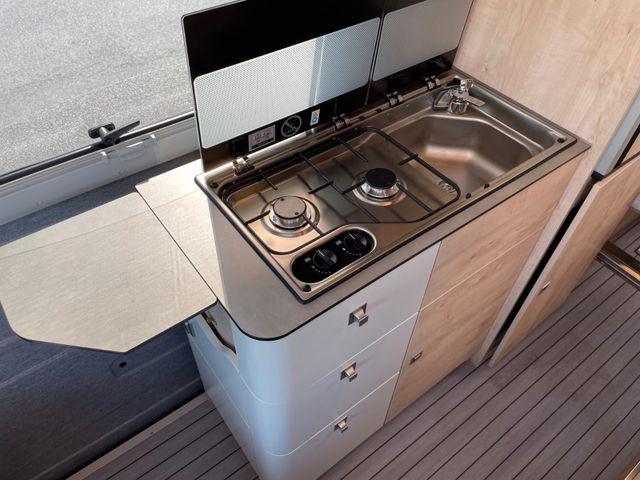 Farbe: Thunder-Grey, Holzdekor Ahorn, Sitzbezug Serie, Nebelscheinwerfer mit Radlaufverbreiterung, Reifendrucksensoren, Tablet-Holder, Zweiter Funkschlüssel, Dachluke hinten 70x50, Seitz D Lux Rahmenfenster ausstellbar HL, Seitz D Lux Rahmenfenster ausstellbar HR, Einlegeboden Duschtasse