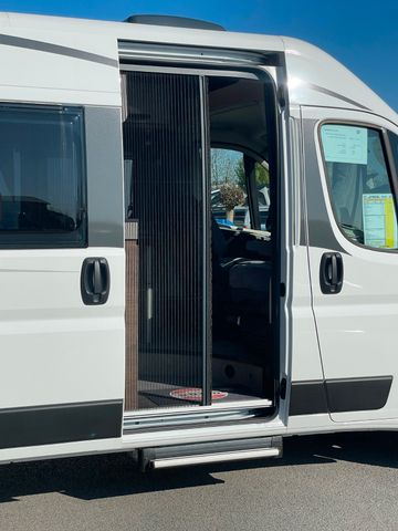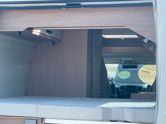 Mit seinem cleveren Raumkonzept bietet er höchsten Komfort: ein gemütliches Querbett, eine praktische Küchenzeile und ein innovatives Bad mit Schwenk-WC. Das elegante Interieur besticht durch hochwertige Materialien und smarten Stauraum.