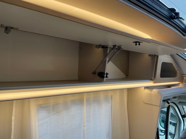 L-Dinette, Feuerlöscher, Zentralverriegelung, Abfalleimer und Fenster Wohnraumtür, Panorama-Dachfenster Front