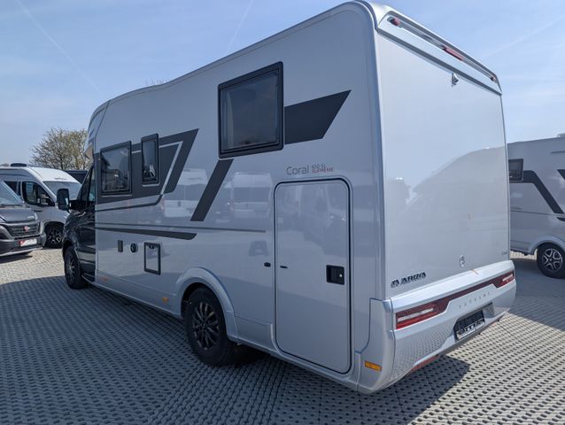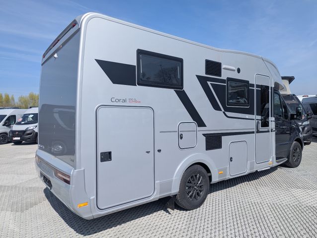 Der CORAL im Design der neuen Generation. Ein teilintegriertes Reisemobil mit dem SunRoof im exklusiven Adria Design für ein Wohnen im Atrium-Stil.