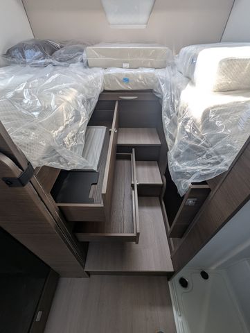 Polster "Arno", Chassis Mercedes Sprinter mit Al-Ko-Tiefrahmen, Airbag Fahrer+Beifahrer, ABS, ASR, ESP, Notbrems-Assistent, Spurhalte-Assistent, Seitenwind-Assistent, Aufmerksamkeits-Assistent, Berganfahrhilfe, Notruf-System, Tagfahrlicht, Nebel-Scheinwerfer, LED-Rücklicht, Klimaanlage FH, Tempomat, Regensensor, Einparkhilfe hinten, Außenspiegel elek. verstell- und beheizbar, Fensterheber FH elek., Funk-Zentralverriegelung FH, 10"-DAB-Moniceiver MBUX, Multifunktions-Lenkrad in Lederoptik, dreh- und höhenverstellbare Komfort-FH-Sitze mit Armlehnen im Wohnraumdesign, Abgasnorm Euro VI, Stopp-Start-System, Frontantrieb, 16"-Räder, Leichtmetall-Felgen, Reifen-Reparatur-Set, Handbremse elek., Kurbelstützen hinten, Falt-Verdunkelung FH, Wohnraumtür mit Fliegenschutz + Fenster + ZV, Wohnraumfenster mit Rahmen, Panorama-Dachhaube Front, Funktions-Doppenboden, Federkern-Matratze auf Festbett(en), APP-Vorbereitung Adria MACHplus, AGM-Wohnraumbatterie 100Ah, Ladebooster, Ladestation 230V / 12V in Garage, TFT-Halterung, Sicherheits-Gasregler MonoControl CS, Gasfilter, Warmwasser-Fußbodenheizung, Dunstabzug, Abdeckung Kocher + Spüle, Backofen mit Grill, Abtropfschale, Cassetten-Toilette mit elektrischer Spülung