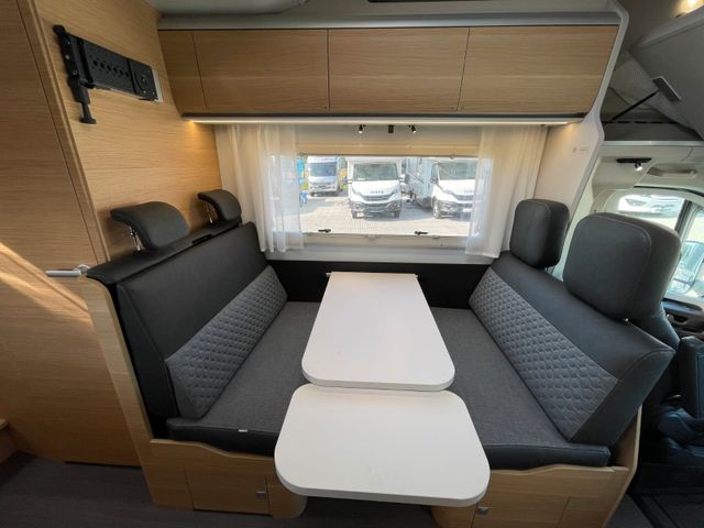 Polster "Arno", Chassis Fiat Ducato mit Tiefrahmen, Airbag Fahrer+Beifahrer, ABS, ASR, ESP, EBD, HBA, LAC, MSR, Hillholder, Traction+, Tagfahrlicht, LED-Rücklicht, Klimaanlage FH, Außenspiegel elek. verstell- und beheizbar, Fensterheber FH elek., Funk-Zentralverriegelung FH, Tempomat, höhenverstellbare Komfort-FH-Sitze mit Armlehnen im Wohnraumdesign, Abgasnorm Euro 6e, ECO-PACK (Stopp-Start + Lichtmaschine intelligent), Getriebe manuell (6+R), Reifen-Reparatur-Set, Frontstoßfänger lackiert in FH-Farbe, Wohnraumfenster mit Rahmen, AGM-Wohnraumbatterie 100Ah, Ladestation 230V / 12V in Garage, Sicherheits-Gasregler MonoControl CS, Dunstabzug, Abdeckung Kocher + Spüle, Abtropfschale, Cassetten-Toilette mit elektrischer Spülung