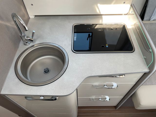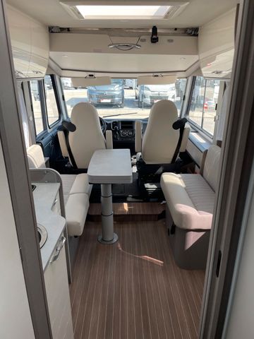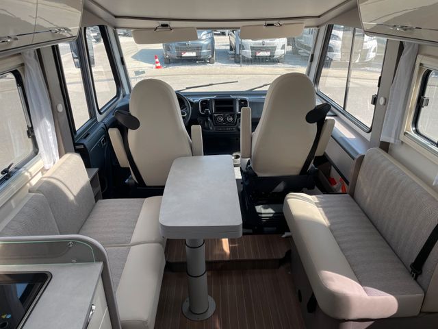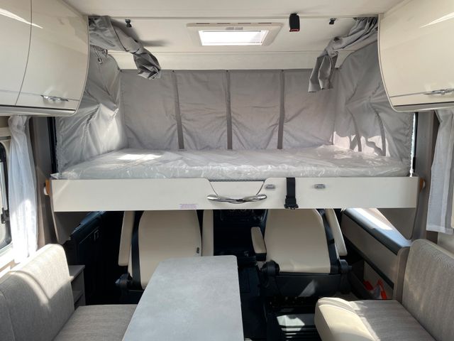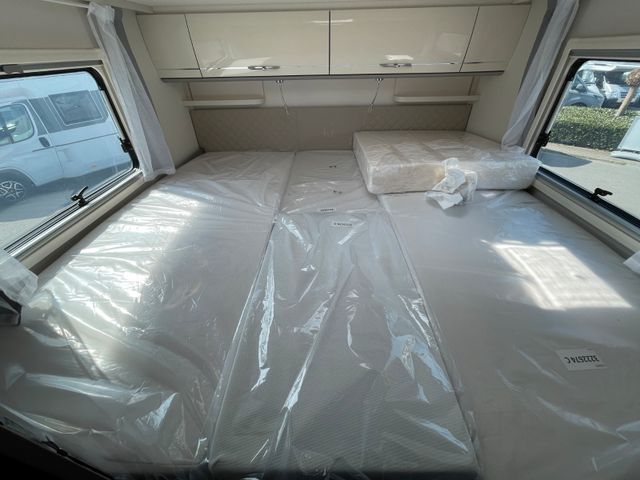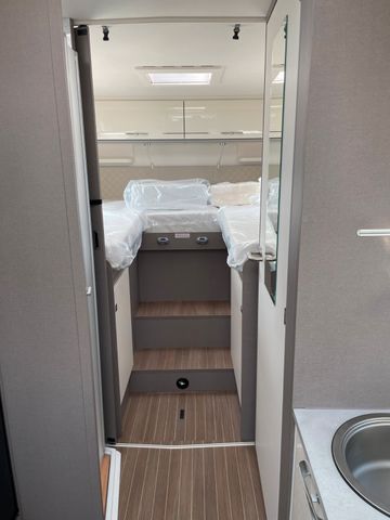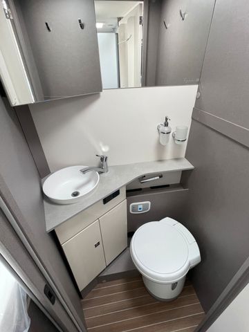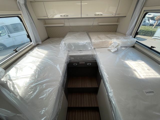 Dieses Modell überzeugt mit durchdachtem Design und hohem Komfort: großzügiger Wohnbereich, Hubbett vorne, moderne Küche und Bad mit separater Dusche. Große Stauraumkapazitäten, Markise und Klimaanlage machen es ideal für ausgedehnte Reisen.