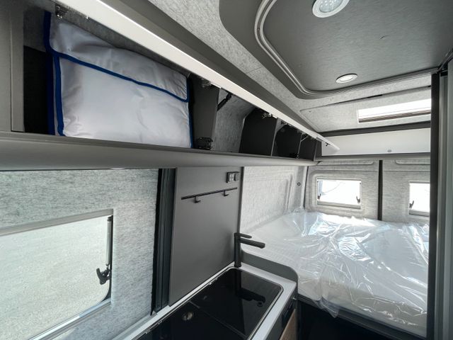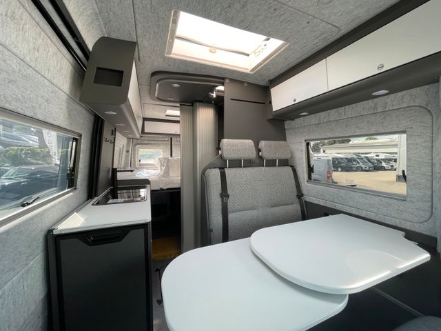 Lithium-Ionen Zweitbatterie 168 Ah, Markteinführungspaket inkl. Navigationssystem, LED-Scheinwerfer & Fahrerassistenz-Paket, Multifunktions-Lederlenkrad (beheizbar), Verkehrszeichenerkennung, Außenspiegel elektrisch verstell-/beheiz-/anklappbar, 230V-Steckdose im Sitzgestell, Automatische Gasflaschenumschaltung mit Crashsensor & Gasfilter, Gästebett quer im Wohnbereich, Wohnwelt Scandi mit Dekor Amberes Oak