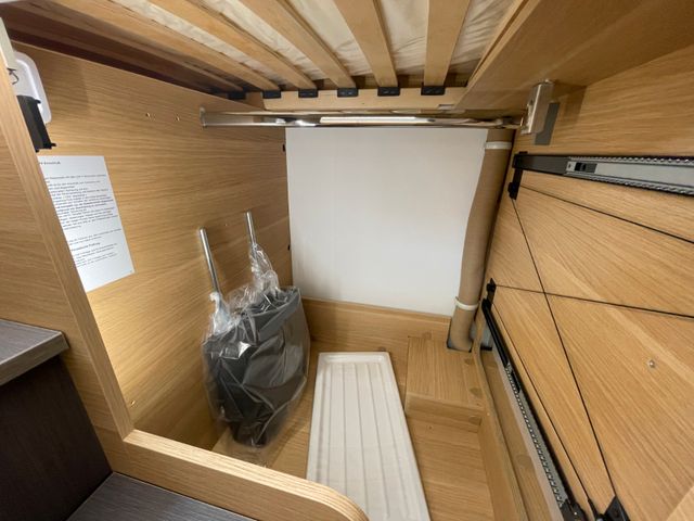 Airbag Fahrer + Beifahrer, ABS, ASR, ESP, Nebelscheinwerfer, 16" Leichtmetall-Felgen, LED-Multifunktionsrückleuchten, Klimaanlage Fahrerhaus, Multifunktionslenkrad in Lederoptik und Antenne im Außenspiegel, Plissee-Verdunkelung Fahrerhaus, Exklusive 60Y Polsterausstattung, Polster ‘Arno’ optional, Breite Wohnraum-Eingangstür mit Zentralverriegelung, Fenster und Fliegenschutz, Einstiegsstufe Fahrerhaus, Tisch in Holzdekor, Abdeck-Holzbrett 60Y für Spüle, Evopore Schaumstoffmatratze, TV-Halterung, DC/DC-Wandler (Lichtmaschinen-Booster), Abwassertank isoliert, beheizt, elektrisches Hubbett, Auswahl an umfangreicher optionaler Ausstattung