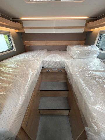 Der Glücksmobil T 741 EBL überzeugt mit durchdachtem Raumkonzept und umfangreicher Ausstattung. Die L-Sitzgruppe im Wohnraum lädt zum Verweilen ein, während das Hubbett über der Sitzgruppe zusätzlichen Schlafkomfort bietet. Die Einzelbetten im Heck sind zu einem großen Doppelbett umbaubar – ideal für Paare oder Familien. Dank moderner Navigation, Rückfahrkamera und CP Plus Bedienpanel ist auch technischer Komfort an Bord. Die manuelle Cassettenmarkise, Rahmenfenster mit Küchenrückwand und viele vorbereitete Systeme wie Solaranlage, SAT-Anlage oder Dachklima runden das Angebot ab. Optisch ansprechend mit Glücksmobil-Beklebung und in der stilvollen Wohnwelt „Heron“ gehalten. Der isolierte Abwassertank und viele weitere Extras machen dieses Fahrzeug zum idealen Begleiter auf Reisen.Chassis: Marke: Fiat