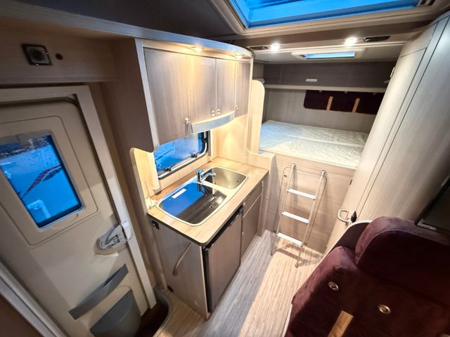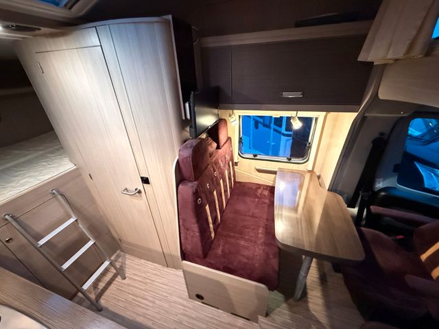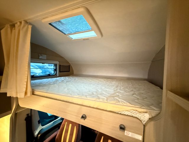 Dieses beliebte Alkoven-Reisemobil bietet alles, was man für komfortable Urlaube benötigt: durchdachte Raumaufteilung, gemütliche Schlafplätze und bewährte Dethleffs-Qualität.