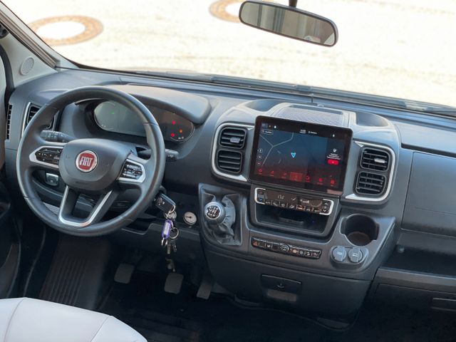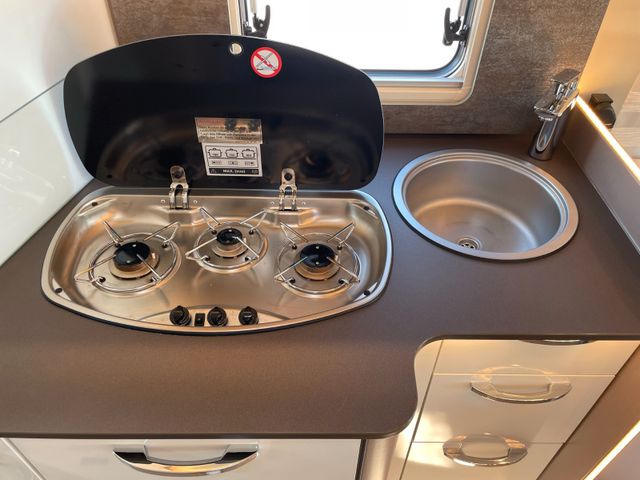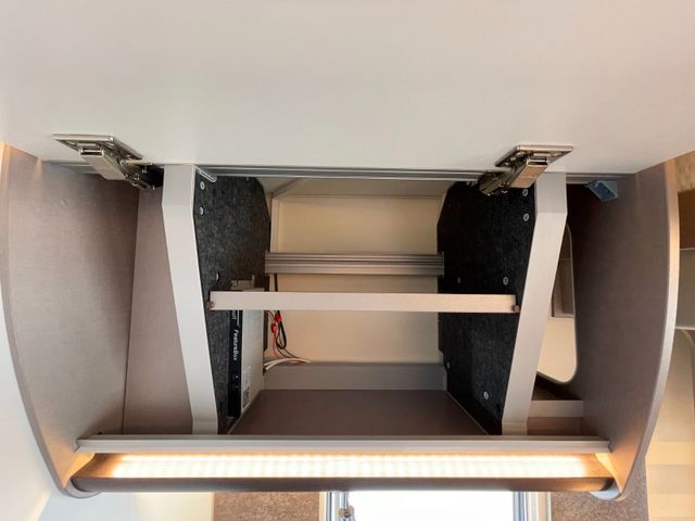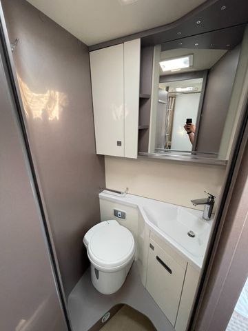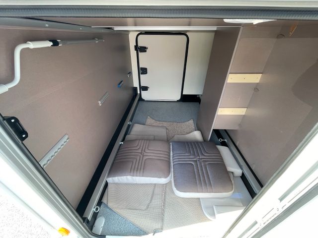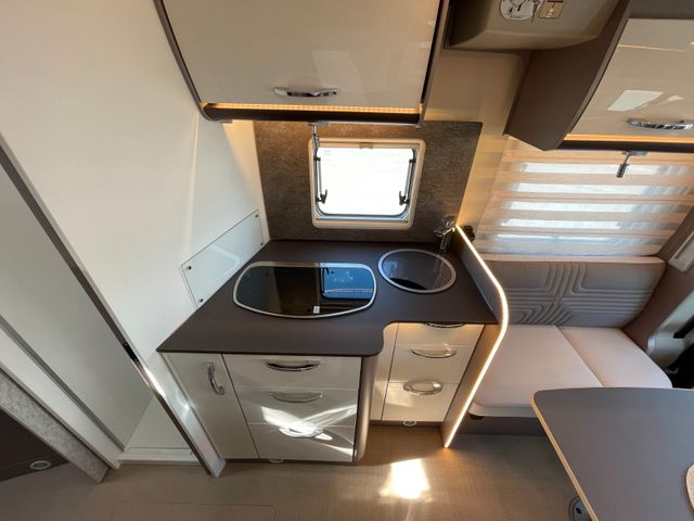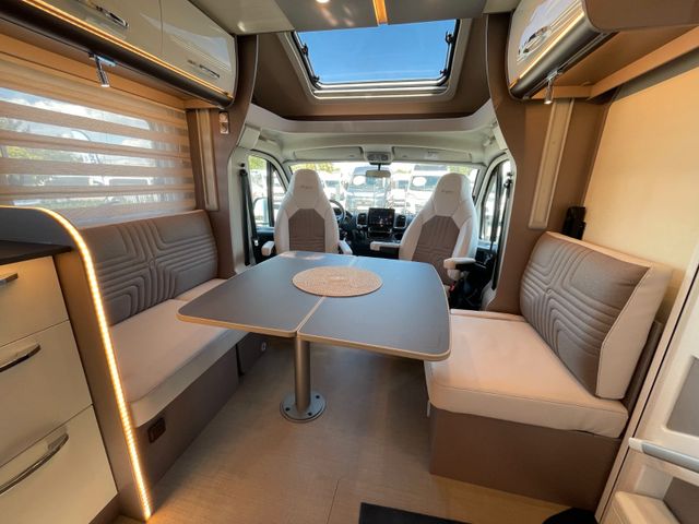 Lackierung Fahrerhaus Lanzarote Grau, Tagfahrlicht Fiat LED, Sonnenmarkise anthrazit – 4,0 m inkl. LED Beleuchtung, Polster Genua Pure, Hubbett über Sitzgruppe elektrisch verstellbar, Abwassertank beheizt durch Heizspirale, Kombisteckdose außen 230 V / 12 V / TV Vorbereitung, Vorbereitung Klima, SAT, Solar, Fiat Komfort Paket mit 10,25“ Touchscreen-Bildschirm, Fiat Drive Easy Paket, Harmony Line Paket Fiat Maxi, Harmony Line Paket Lyseo TD ohne Kapselhalter, DuoControl CS, 120 Watt Solar, Gasaußensteckdose, Sat Oyster Premium Base + TV, Rückfahrkamera, Goldschmitt Luftfederung, SOG für WC, MaxFan Bereich Küche, Wohnraumteppich als Beiladung