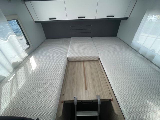 Mittelsitzgruppe, Seitensitzgruppe, Dusche, WC, Solaranlage, Heckgarage, Festbett,
