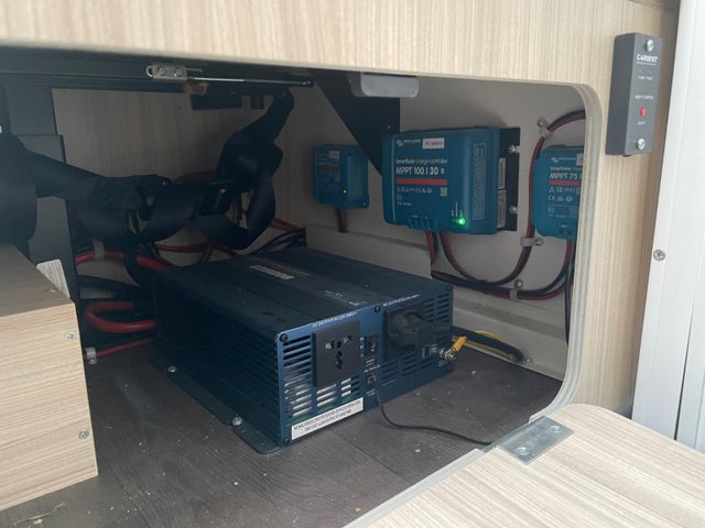 Ford 165 PS Automatikgetriebe, Heavy 4,1T, Panorama Dahchaube Wohnraum, Anhängerkupplung starr, Truma Heizung Gas+ Elektro, Großer Kühlschrank, 300AH Lithium, Markise, Radio + Rückfahrkamera, 400W Solar, Maxxfann, Duo Control, Clesana, Gastank Flaschen LPG -> Befüllung von außen, Wechselrichter 2000W, Nachbau Kleiderstange im Bettbereich, reparierter Steinschlag Frontscheibe, Heck Beifahrerseite Schramme