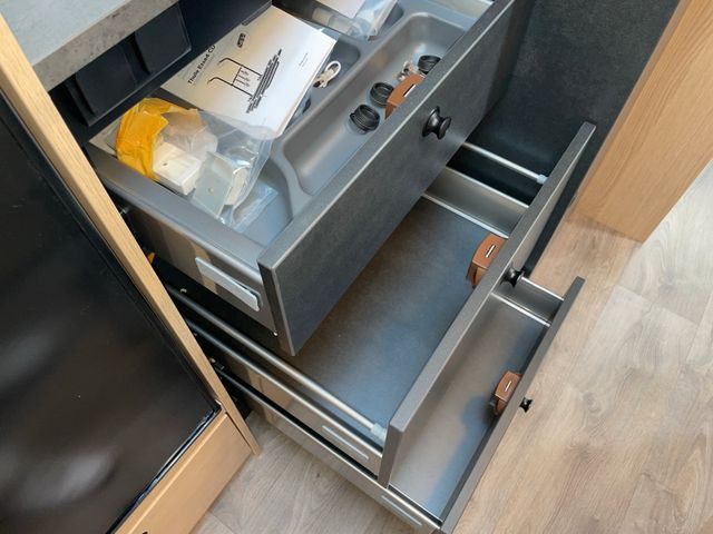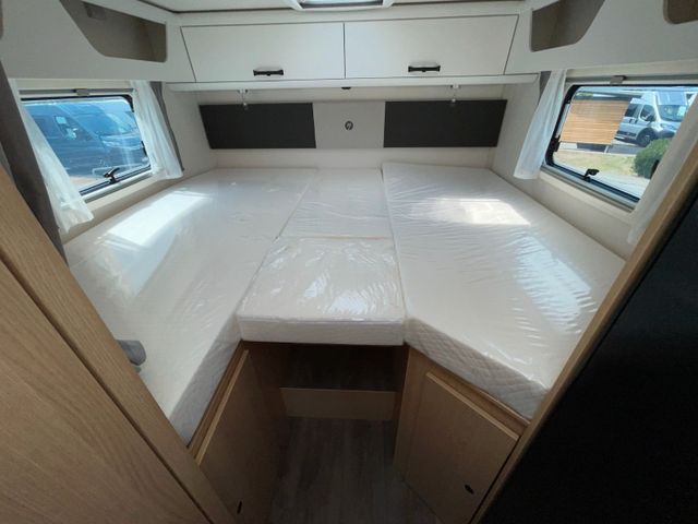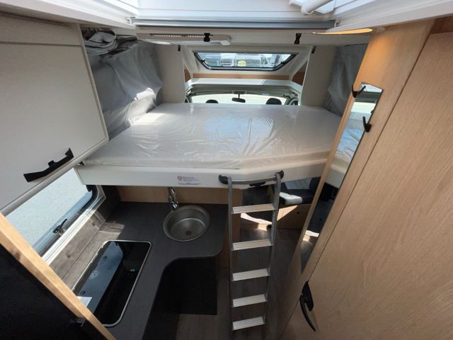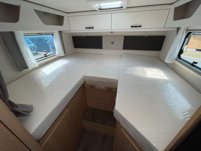 Bettenumbau Einzelbett zu Doppelbett, Bettenumbau im Bereich Sitzgruppe, Hubbett mit Clima-Plux-Elementen, Holzrost in der Dusche, Sitzplatz auf Seitensitzbank mit Sicherheitsgurt, Faltverdunkelung, Kabelvorbereitung Rückfahrkamera, Paket Alufelgen schwarz (16" Alufelgen Light), All Risk Versicherung