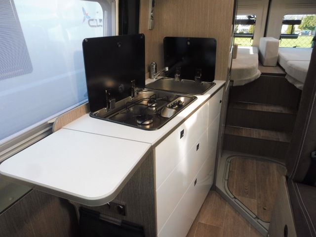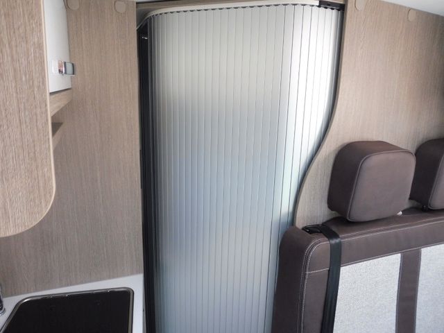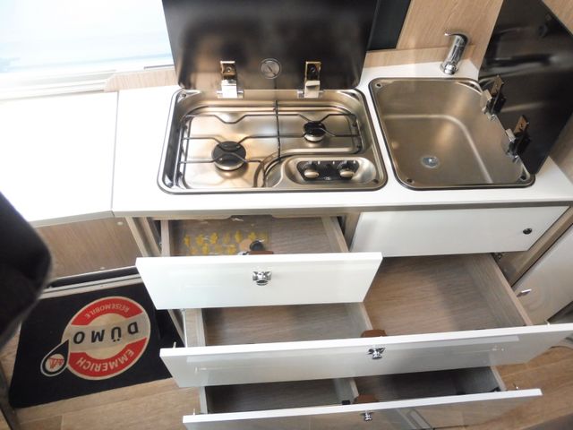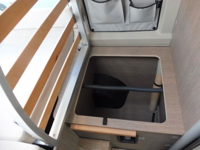 Technik: Komfort Ablassventil für Frischwassertank, Zwei Serviceöffnungen im Frischwassertank für bequeme Reinigung, Serviceklappe für Cassettentoilette mit praktischem Magnethalter, Leistungsstarke Truma Combi Heizung mit 10l Boiler, Angenehmer Schlafkomfort durch zusätzlichen Warmluftauslass im Hecktürbereich, Wasserversorgung über zuverlässiges Pumpensystem, Großzügiger Gasvorrat in bequem erreichbarem Gaskasten,CEE-Außenanschluss für 230 V mit Sicherungsautomat, Elektroschaltzentrale gut zugänglich unter dem Fahrersitz