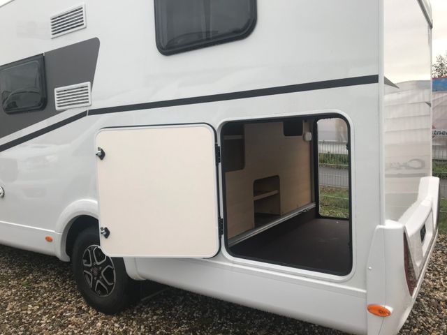 7 Jahre Dichtigkeitsgarantie, Dach- und Heckaußenhaut aus widerstandsfähigem GFK, Seitenwandaußenhaut aus Aluminium-Glattblech, Dach- und Wandstärke 34 mm, Fußbodenstärke, 41 mm, Design Heckleuchtenträger dreiteilig mit Voll-LED, Leuchten, Hochwertige Aufbautür mit ergonomischer Griffposition innen und außen, Ausstellfenster doppeltverglast mit Verdunkelungsrollo und Fliegenschutz (ausgenommen Toilettenraumfenster), Dachhaube in Milchplexiglas mit Fliegenschutz, Elektrische Trittstufe, Großzügige Heckgarage mit Rahmenabsenkung,, Antirutschfläche, Verzurrösen und Innenbeleuchtung (modellabhängig), Schwallwasserdichtungen an den Außenstauraumklappen und Türen, Zuladung Heckgarage bis zu 150 kg, Fahrerhaus-Jalousien für beste Isolation und, Sichtschutz