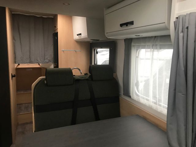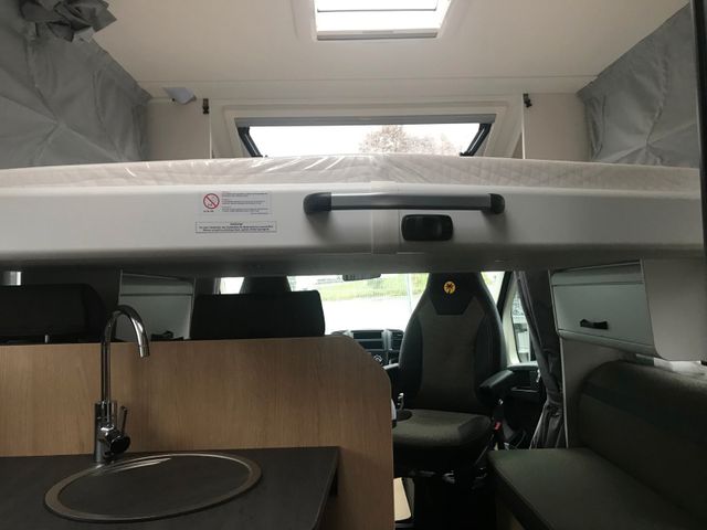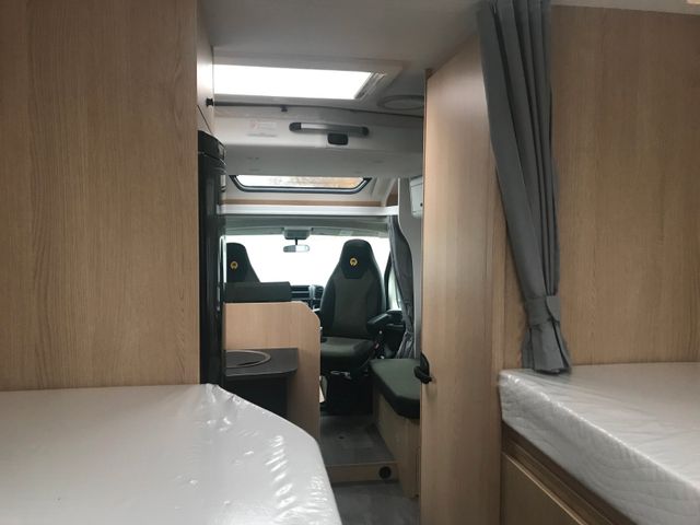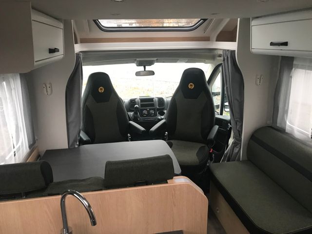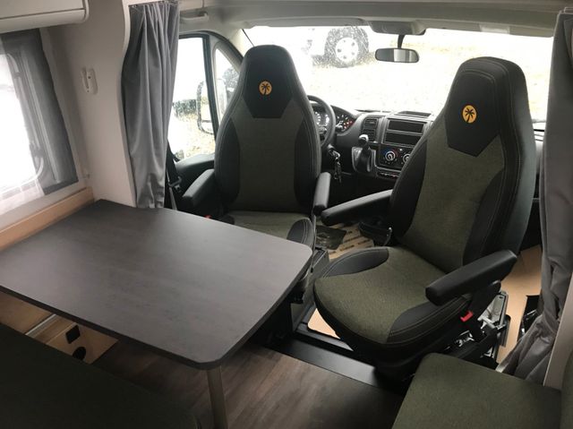 Automatik, Tempomat, Klimaanlage Fahrerhaus manuell, Breitspurfahrwerk, Frontantrieb, Stoßfänger lackiert, Tagfahrlicht im Serienschweinwerfer integriert, Fahrer-/ und Beifahrerairbag, ABS, EBD, ESP, ESC inkl. ASR und Hillholder, Elektrische Fensterheber und Zentralverriegelung im Fahrerhaus, Außenspiegel elektrisch und beheizt, Pannen-Set Fix & Go Kit, Getränkehalter in der Mittelkonsole, Komfortable Fahreigenschaften durch Hinterund Vorderachs-Stabilisatoren, Scheibenbremsen, Umluftheizung, Drehzahlmesser, Servolenkung, Wegfahrsperre, 3-PunktSicherheitsgurt, Stahlfelgen 16" inkl. Radzierblenden, USB-Steckdose, Captain Chair mit Bezügen, Fahrer-/Beifahrersitz in Wohnraumstoff mit, Doppelarmlehnen, Fahrer-/Beifahrersitz drehbar, Dieseltank 75 ltr., Höhen- und Neigungsverstellung für Fahrer-/ und