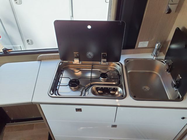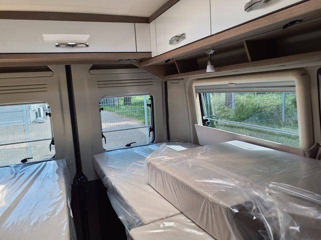 Einstiegsbeleuchtung, Fliegenschutz-Schiebetür, Ausstellfenster mit Fliegengitterrollo, Verdunklungsplissée und Aussteller (grundrissabhängig), Optimierte Mehrschicht-Dachisolierung (Styrodur, PE-Schaum), Optimierte Bodenisolierung mit geschlossenzelligem Schaum (RTM-Schaum), Wandisolierung mit flexiblen Isoliermatten (PE-Schaum), Mini- und Midi-Hekis mit GFK-Adapter verbaut für eine optimale Passform und Dichtigkeit, Hochwertiges Midi-Heki über der Sitzgruppe, Klarglas Mini-Heki im Schlafbereich, Zusätzliches Bodenstaufach bei Sitzgruppe (grundrissabhängig), Befestigungsmöglichkeit in der Heckgarage, Isofix Kindersitzbefestigung (grundrissabhängig)