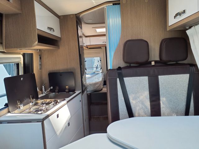 Elegance-Ausführung, Polster Marais, 3.Bett inkl.Alternatitvtisch, 2.Aufbaubatterie, Elektropaket für Aufbau, Toilettenraumfenster, Truma Bedienteil CP Plus, Gas Duo-Control CS