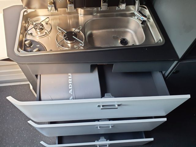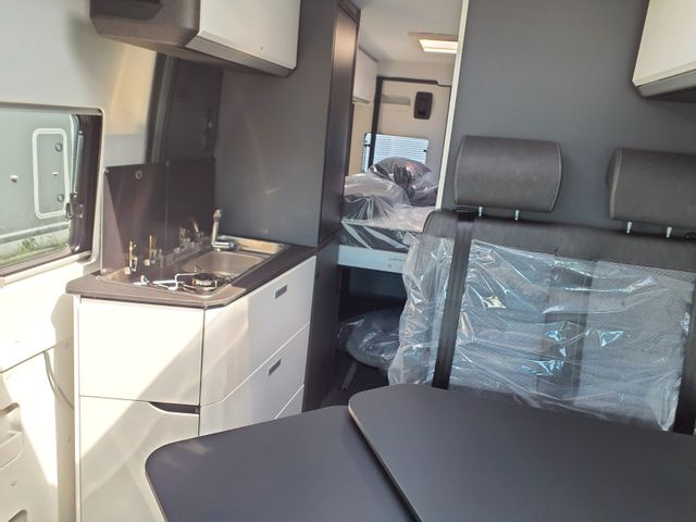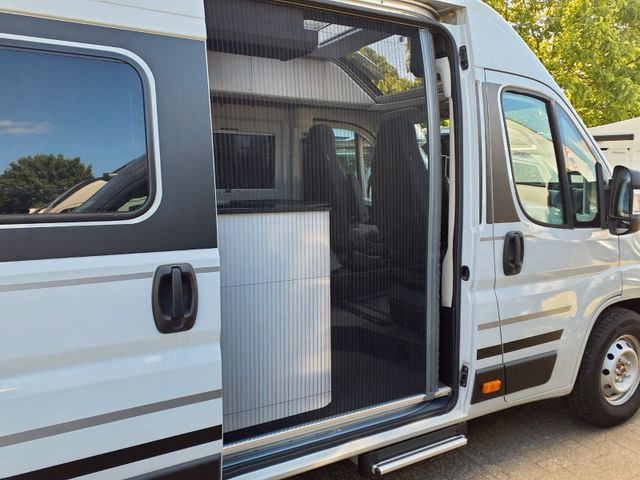 Einparkhilfe hinten, Fahrerhaus- und Wohnraumscheiben getönt, Fenster inkl. Kombirollo in Hecktüren, Falt-Verdunkelung Faherhaus und Wohnraum-Seitenfenster, Fliegenschutz an Schiebetür, Einstiegsstufe elektrisch, Einstiegsbeleuchtung, Lade-Booster, LED-Ambientebeleuchtung, Mono Control CS inkl. Gasfilter, Abwassertank isoliert und beheizbar,Abwasserablassventil elektrisch, Abdeckung Kocher und Spüle,Tisch mit Ausdreherweiterung und Becherhalterung.
