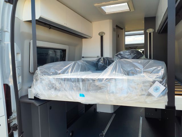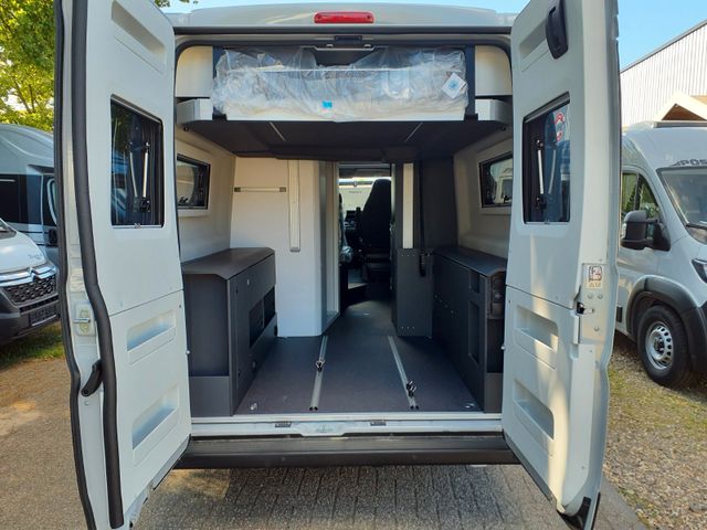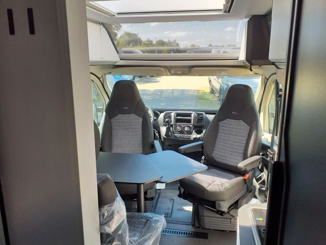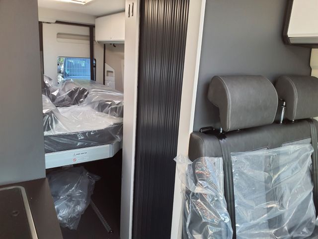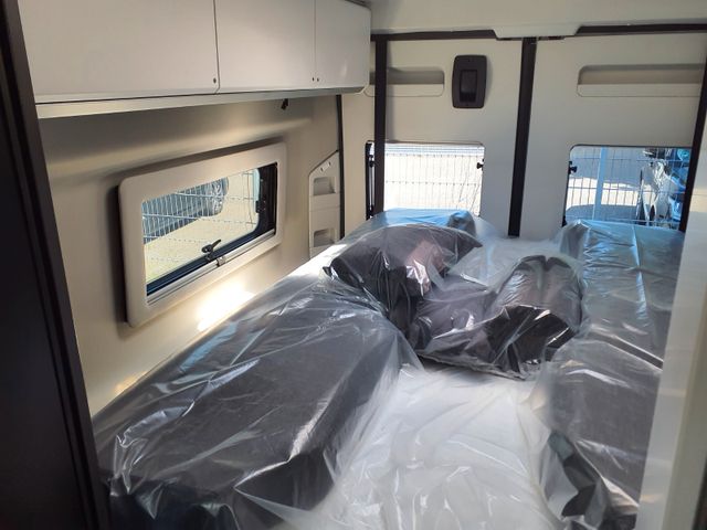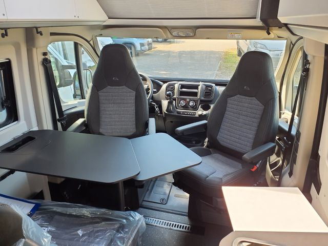 Polster "Arno", Airbag Fahrer+Beifahrer, ABS, ASR, ESP, EBD, HBA, LAC, MSR, Hillholder, Traction+ (ab 3500kg), Tagfahrlicht, Klimaanlage FH, Außenspiegel elek. verstell- und beheizbar, Fensterheber FH elek., FunkZentralverriegelung FH, Tempomat, dreh- und höhenverstellbare Komfort-FH-Sitze mit Armlehnen im Wohnraumdesign, Stopp-Start-Automatik (ab 3500kg), Getriebe manuell (6+R), 16"-Räder (ab 3500kg), ReifenReparaturset, Stopper an Schiebetür, AGM-Wohnraumbatterie 100Ah, Dusche, Cassetten-Toilette mit elektrischer Spülung,