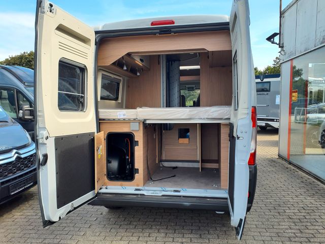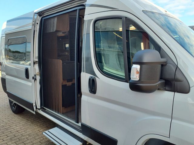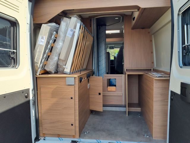 Alufelgen 16 " ,DAB Antenne im Außenspielgel, USB Ladeanschluß, Techno- Trim Armaturenbrett, Getränkehalterung + Halterung für Smartphone / Tablet Radiovorrüstung mit 4 Lautsprechern, Außenspiegel elektr. Verstell- und beheizbar, Bedientasten für Radio am Lenkrad ,Nebelscheinwerfer, Lederlenkrad, Klimaautomatik, Induktive Ladestation, Lackierte Stoßfänger, Digitales Cockpit, Captain Chair drehbar, Fahrerhausverdunkelung, Ladebooster 25A, Fenster Toiraum Extras Chassis:
