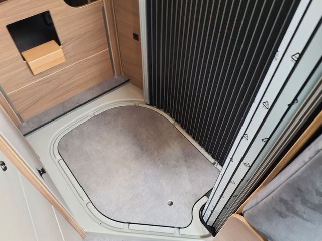 Komfort Ablassventil für Frischwassertank, Zwei Serviceöffnungen im Frischwassertank für bequeme Reinigung, Serviceklappe für Cassettentoilette mit praktischem Magnethalter, Leistungsstarke Truma Combi Heizung mit 10l Boiler, Angenehmer Schlafkomfort durch zusätzlichen Warmluftauslass im Hecktürbereich, Wasserversorgung über zuverlässiges Pumpensystem, Großzügiger Gasvorrat in bequem erreichbarem Gaskasten, CEE-Außenanschluss für 230 V mit Sicherungsautomat, Elektroschaltzentrale gut zugänglich unter dem Fahrersitz, Leistungsstarke Aufbaubatterie, Multifunktions-Panel, leicht bedienbar über der Eingangstür, Verstellbare Spots auf Schienensystem unter den Dachschränken sorgen für optimale Ausleuchtung