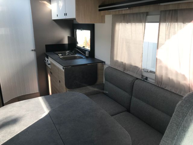 Außenbeleuchtung Eingangstür, Dieselheizung während der Fahrt benutzbar, ESP, Elektrische Feststellbremse, Elektrische Rückspiegel mit Abtau-Automatik, FORD pass, Fahrer- und Beifahrerairbag, Fenster -Doppelverglasung mit Kombirollos, Fix and Go, Gardinen, Gedämpfte Schrankscharniere softclose, Höhenverstellbare Drehsitze mit zwei Armlehnen, IRP-Struktur: Polyester (GFK) -Boden, -Wände und -Dach, Bodenstärke 64 mm, Isolierte Aufbaustufe, Kleiderschrank, Klimaanlage Fahrerhaus automatische, Lichtautomatik und Automatischer Scheibenwischer mit Regensensor, Nebelscheinwerfer, Panorama-Dachfenster im Fahrerhaus, Panorama-Dachhaube (oder 2 Dachhauben), START & STOP, Schonbezüge für Fahrerhaussitze, Stoßstange in Wagenfarbe lackiert, TV-Vorbereitung, Technibox, Tempomat + Geschwindigkeitsbegrenzer, Trennvorhänge Fahrerhaus/Innenraum, USB-Anschluss/USB-C,