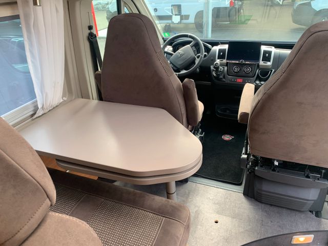 Fahrerhaus: Fahrer- und Beifahrerkomfortsitz drehbar mit beidseitigen Armlehnen, Höhenverstellbarer Fahrersitz, Großer Stauraum über dem Fahrerhaus (grundrissabhängig)