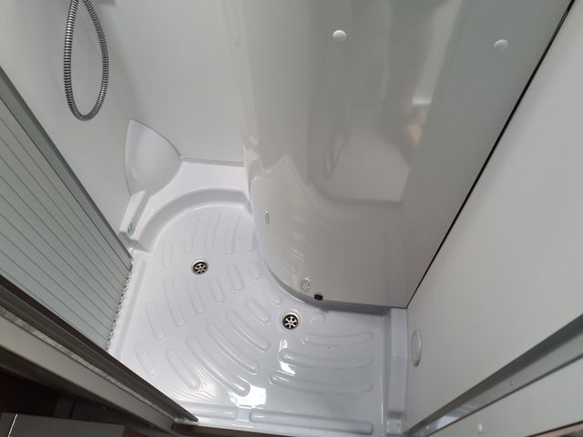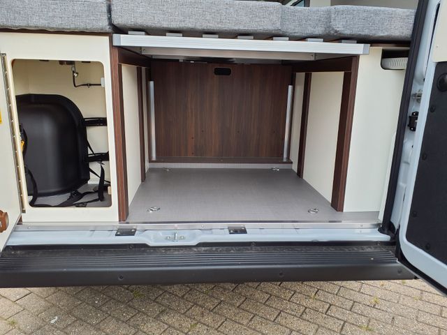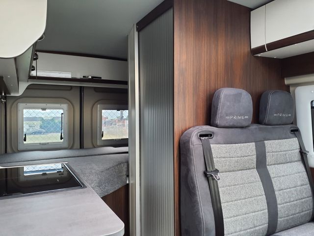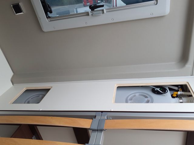 Aufbau: Einstiegsbeleuchtung, Integrierte Rahmenfenster, Fliegenschutz-Schiebetür, Alle Fenster mit Fliegengitterrollo, Verdunklungsplissée und Aufsteller, Optimierte Mehrschicht-Dachisolierung, Optimierte Bodenisolierung mit geschlossen-zelligem Schaum (RTM-Schaum), Wandisolierung mit flexiblen Isoliermatten (PE-Schaum), Mini und Midi Hekis mit GFK-Adapter verbaut für optimale Passform und Dichtigkeit, Zusätzliches Bodenstaufach bei Sitzgruppe, Befestigungsmöglichkeit in der Heckgarage