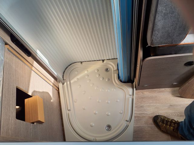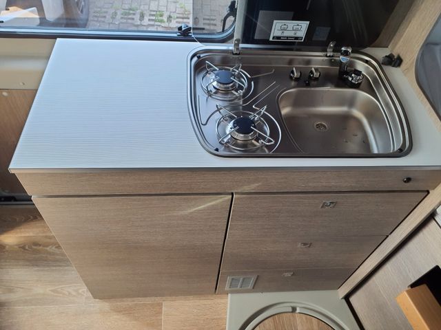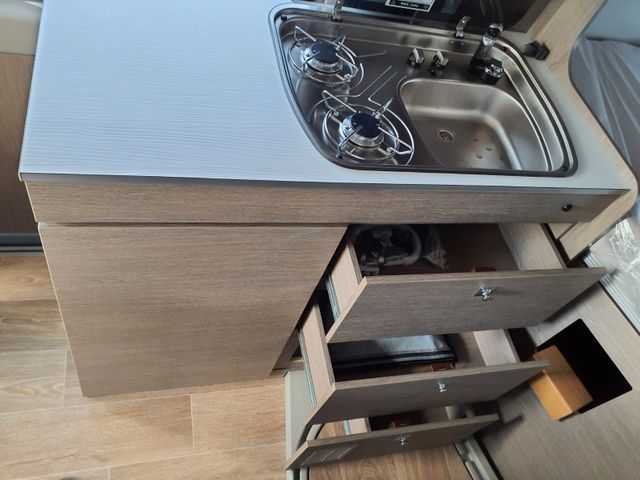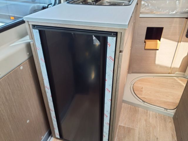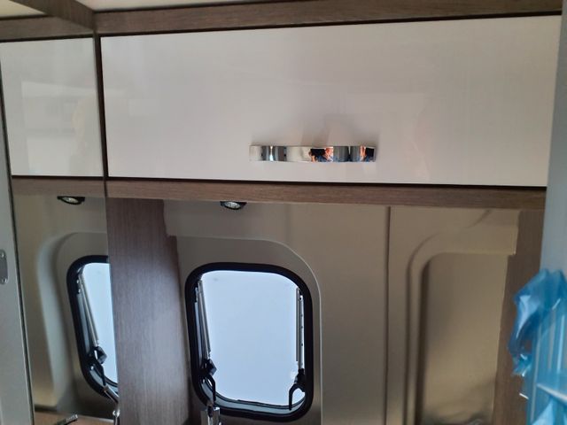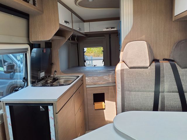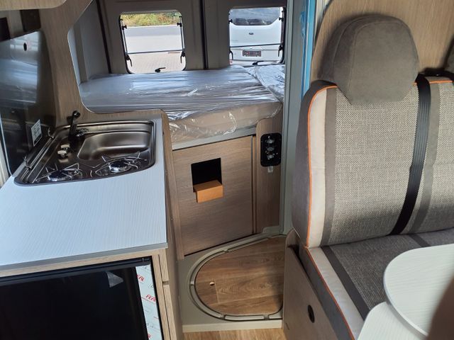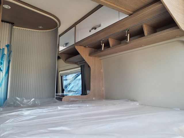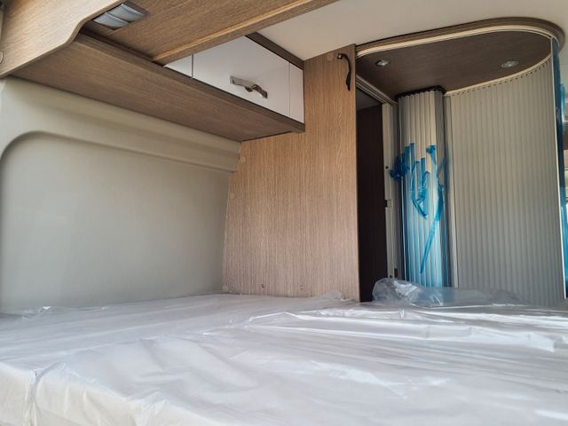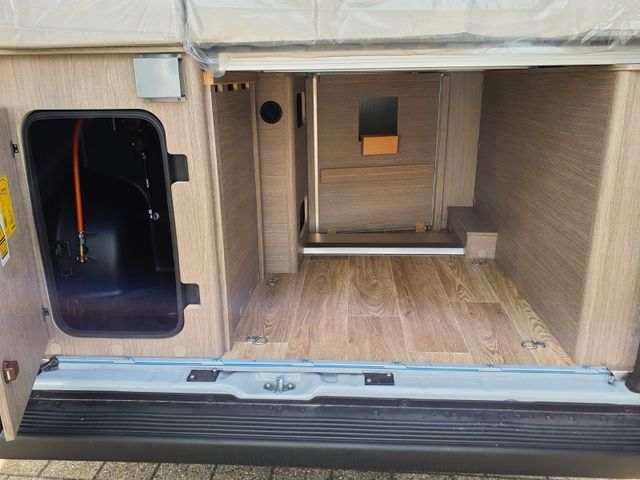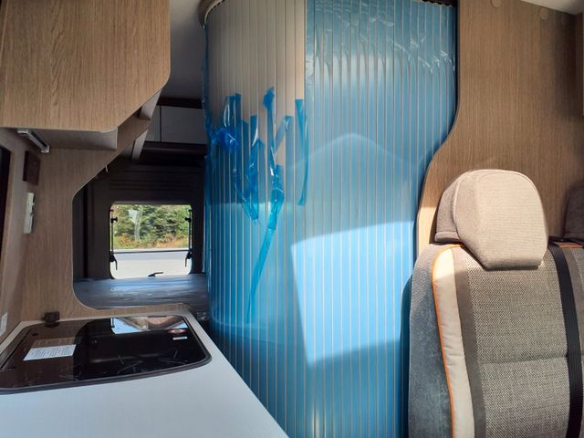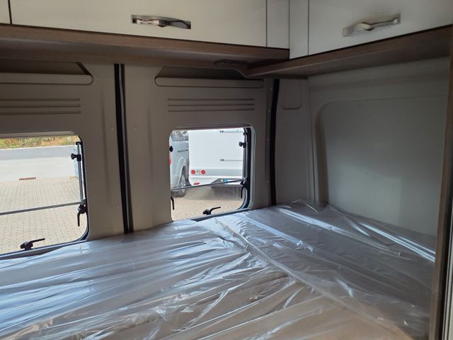 Aufbau: Softlock Schließhilfe für Schiebetür, Breite, elektrisch ausfahrbare Trittstufe mit Warnsummer, Einstiegsbeleuchtung, Fliegenschutz-Schiebetür, Ausstellfenster mit Fliegengitterrollo, Verdunklungsplissée und Aussteller (grundrissabhängig), Optimierte Mehrschicht-Dachisolierung (Styrodur, PE-Schaum), Optimierte Bodenisolierung mit geschlossenzelligem Schaum (RTM-Schaum), Wandisolierung mit flexiblen Isoliermatten (PE-Schaum), Mini- und Midi-Hekis mit GFK-Adapter verbaut für eine optimale Passform und Dichtigkeit, Hochwertiges Midi-Heki über der Sitzgruppe, Klarglas Mini-Heki im Schlafbereich, Zusätzliches Bodenstaufach bei Sitzgruppe (grundrissabhängig), Befestigungsmöglichkeit in der Heckgarage, Isofix Kindersitzbefestigung (grundrissabhängig)