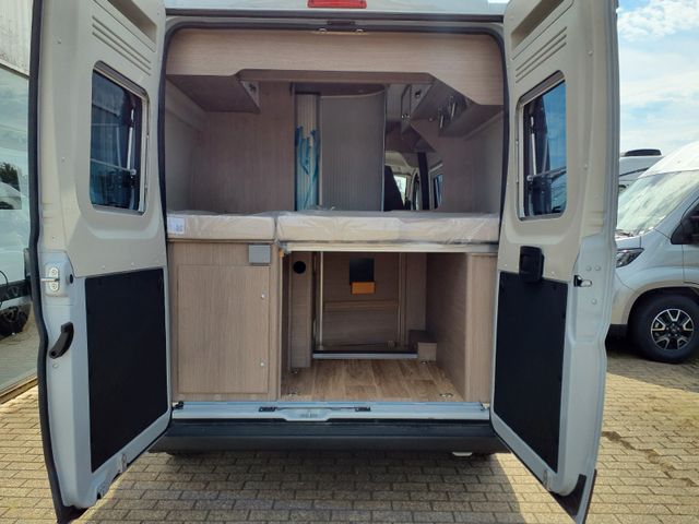 Technik: Komfort Ablassventil für Frischwassertank, Zwei Serviceöffnungen im Frischwassertank für bequeme Reinigung, Serviceklappe für Cassettentoilette mit praktischem Magnethalter, Leistungsstarke Truma Combi Heizung mit 10l Boiler, Angenehmer Schlafkomfort durch zusätzlichen Warmluftauslass im Hecktürbereich, Wasserversorgung über zuverlässiges Pumpensystem, Großzügiger Gasvorrat in bequem erreichbarem Gaskasten, CEE-Außenanschluss für 230 V mit Sicherungsautomat, Elektroschaltzentrale gut zugänglich unter dem Fahrersitz, Leistungsstarke Aufbaubatterie, Multifunktions-Panel, leicht bedienbar über der Eingangstür,Verstellbare Spots auf Schienensystem unter den Dachschränken sorgen für optimale Ausleuchtung