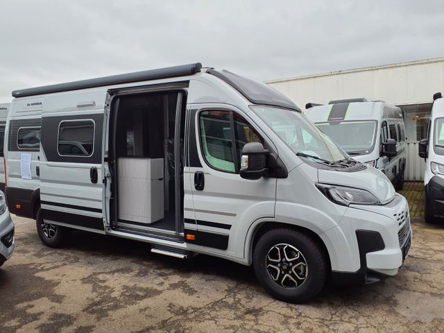 Polster "Arno", Airbag Fahrer+Beifahrer, ABS, ASR, ESP, EBD, HBA, LAC, MSR, Hillholder, Traction+ (ab 3500kg), Tagfahrlicht, Klimaanlage FH, Außenspiegel elek. verstell- und beheizbar, Fensterheber FH elek., FunkZentralverriegelung FH, Tempomat, dreh- und höhenverstellbare Komfort-FH-Sitze mit Armlehnen im Wohnraumdesign, Stopp-Start-Automatik (ab 3500kg), Getriebe manuell (6+R), 16"-Räder (ab 3500kg), ReifenReparaturset, Stopper an Schiebetür, AGM-Wohnraumbatterie 100Ah, Dusche, Cassetten-Toilette mit elektrischer Spülung,