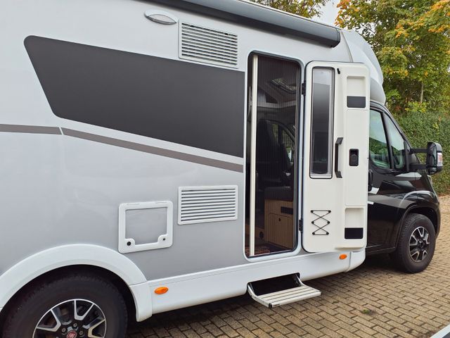 7 Jahre Dichtigkeitsgarantie, Dach- und Heckaußenhaut aus widerstandsfähigem GFK, Seitenwandaußenhaut aus Aluminium-Glattblech, Dach- und Wandstärke 34 mm, Fußbodenstärke, 41 mm, Design Heckleuchtenträger dreiteilig mit Voll-LED, Leuchten, Hochwertige Aufbautür mit ergonomischer Griffposition innen und außen, Ausstellfenster doppeltverglast mit Verdunkelungsrollo und Fliegenschutz (ausgenommen Toilettenraumfenster), Dachhaube in Milchplexiglas mit Fliegenschutz, Elektrische Trittstufe, Großzügige Heckgarage mit Rahmenabsenkung,, Antirutschfläche, Verzurrösen und Innenbeleuchtung (modellabhängig), Schwallwasserdichtungen an den Außenstauraumklappen und Türen, Zuladung Heckgarage bis zu 150 kg, Fahrerhaus-Jalousien für beste Isolation und, Sichtschutz