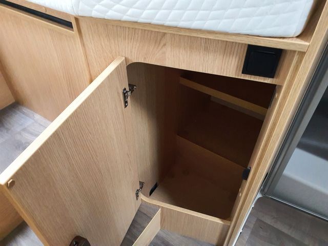 LED-Beleuchtung integriert unter den, Dachschränken, Leistungsstarke, wartungsfreie AGM-Aufbaubatterie (95 Ah) inkl. Ladegerät (18 A), Bord-Control-Panel mit Angabe aller Füllstände und Batteriekapazitäten, Zuschalt-/Trennautomatik für Starter- und Aufbaubatterie sowie Kühlschrank, Elektrischer Ladeautomat für Aufbau- und Fahrzeugbatterie 12 V / 18 A, CEE-Außenanschluss für 230 V mit Sicherungsautomat, FI-Schutzschalter, LED-Außenleuchte, LED-Wohnraumleuchte, 4 x USB-Steckdose (Grundriss abhängig)