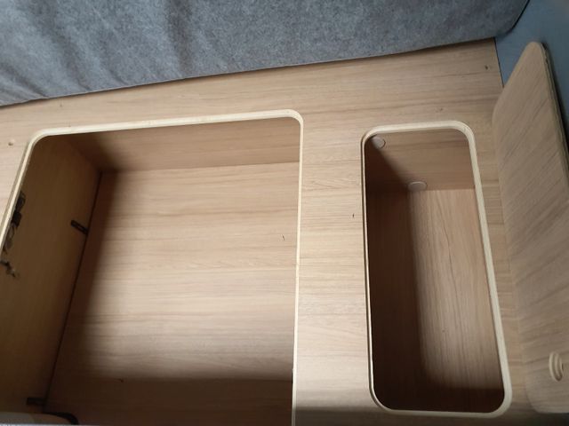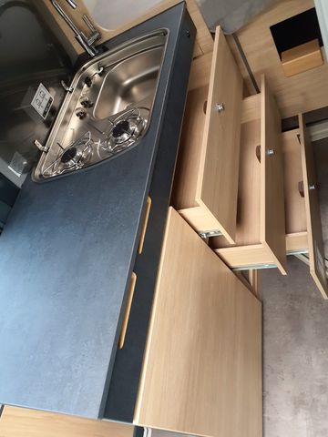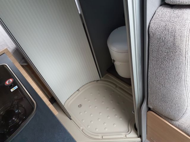 Technik: Komfort Ablassventil für Frischwassertank, Zwei Serviceöffnungen im Frischwassertank für bequeme Reinigung, Serviceklappe für Cassettentoilette mit praktischem Magnethalter, Leistungsstarke Truma Combi Heizung mit 10l Boiler, Angenehmer Schlafkomfort durch zusätzlichen Warmluftauslass im Hecktürbereich, Wasserversorgung über zuverlässiges Pumpensystem, Großzügiger Gasvorrat in bequem erreichbarem Gaskasten,CEE-Außenanschluss für 230 V mit Sicherungsautomat, Elektroschaltzentrale gut zugänglich unter dem Fahrersitz