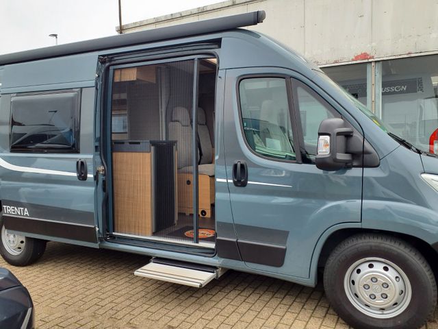 Einzigartiges offenes Wohnraumkonzept mit viel Kopf- und Bewegungsfreiheit wie in einem integrierten Reisemobil, Offener Fahrerhaushimmel mit zusätzlichen hinterleuchteten Staufächern, Hochwertige Polster in der Sitzgruppe, Hochwertige Wandverkleidung in der Sitzgruppe und im Schlafbereich (nur Trenta 640) für ein besonderes Wohnklima, Einzigartiges Lichtkonzept