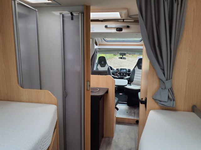 6-Gang-Schaltgetriebe, Tempomat, Klimaanlage Fahrerhaus manuell, Breitspurfahrwerk, Frontantrieb, Stoßfänger lackiert, Tagfahrlicht im Serienschweinwerfer integriert, Fahrer-/ und Beifahrerairbag, ABS, EBD, ESP, ESC inkl. ASR und Hillholder, Elektrische Fensterheber und Zentralverriegelung im Fahrerhaus, Außenspiegel elektrisch und beheizt, Pannen-Set Fix & Go Kit, Getränkehalter in der Mittelkonsole, Komfortable Fahreigenschaften durch Hinterund Vorderachs-Stabilisatoren, Scheibenbremsen, Umluftheizung, Drehzahlmesser, Servolenkung, Wegfahrsperre, 3-PunktSicherheitsgurt, Stahlfelgen 16" inkl. Radzierblenden, USB-Steckdose, Captain Chair mit Bezügen, Fahrer-/Beifahrersitz in Wohnraumstoff mit