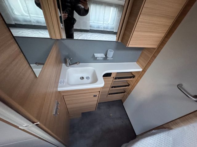 Dusch-Paket (Duschausstattung inkl. Duscharmatur und -vorhang, City-Wasseranschluss), Styling-Paket weiß (Einachser) (Außenblech in Glattblech wei?, 17" Alufelgen im Dethleffs-Design (Einachser), Deichselabdeckung, Gro?fl?chige Abstützfüße, 4 St., Vollgummi-St?tzrad mit Stützlastanzeige, Rangiergriffe in Chrom-Ausf?hrung, Heckleuchtentr?ger mit hohem Aufsatz und Dachreling, Bugfront mit hohem Aufsatz und Dachreling), Wohnwelt Mount, Sicherh.-Gasdruckregl. DuoControl mit Crash Sensor und Gasreglerbeheizung EisEx, Rauchmelder, Auflastung 2.000 kg (inkl. Alurad 225/70 R15 C LI112), Wohnraumeingangst?re mit Fenster, einteilig, Dachhaube Heki II inkl. Baldachin beleuchtet, Rahmenfenster (nicht möglich für Bug- und Heckfenster), XPS-Isolierung Bug, Heck und Seiten (abh?ngig von Fahrzeuggröße), Stockbett mit 3 Schlafplätzen, nicht klappbar, Vorbereitung für Flachbildschirm (Antennenkabel und TV-Halter), Warmluftheizung Combi 6 G/E inkl. Digitalbedienteil, Elektrik-Autark Ausstattung, Indirekte Beleuchtung, Frischwassertank 70 Liter, Reich Mover (Rangierhilfe)