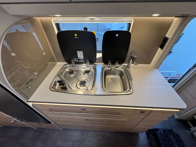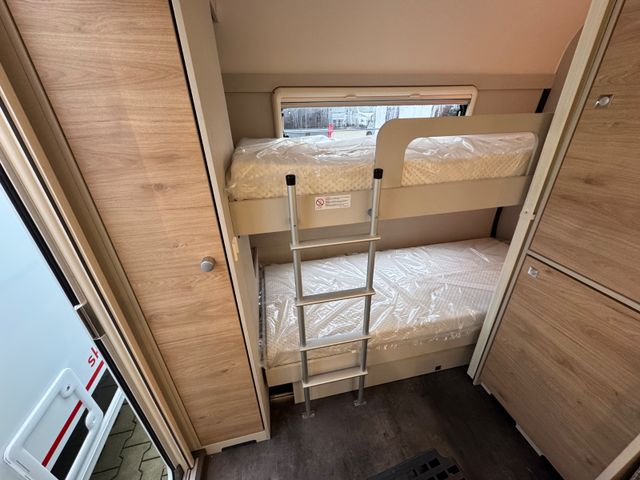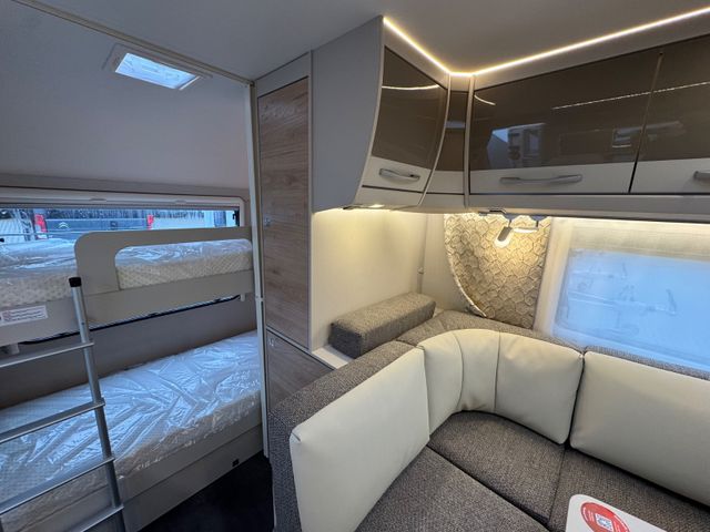 Winterkomfort-Paket SNOW PLUS (Warmwasserheizung, Warmwasser-Fußbodenerwärmung (nur i. Verb. mit SA 205), Abwasserleitungen isoliert und beheizt, XPS-Isolierung Bug, Heck und Seiten (abhängig von Fahrzeuggröße)), Mover-Autark-Paket (Einachser) (Rangierhilfe Mover für Einachser, Elektrik-Autark Ausstattung), Sicherheitspaket (ATC Trailer Control, Sicherh.-Gasdruckregl. DuoControl mit Crash Sensor und Gasreglerbeheizung EisEx, Rauchmelder), Wohnwelt Ruby, Außenblech in Glattblech weiß, Auflastung 2.000 kg (inkl. Alurad 225/70 R15 C LI112), Großflächige Abstützfüße, 4 St., Vollgummi-Stützrad mit Stützlastanzeige, Pannenset, Rahmenfenster (nicht möglich für Bug- und Heckfenster), Dach-Casettenmarkise 4500x2500 mm, manuell, 7-Zonen-Doppelbettmatratze aus klimaregulier. Material mit Watergel-Auflage, Feuerlöscher 2 kg, Vorbereitung für Flachbildschirm (Antennenkabel und TV-Halter), Multifunktions-Außenanschluss 12V, 220V, TV und SAT, City-Wasseranschluss