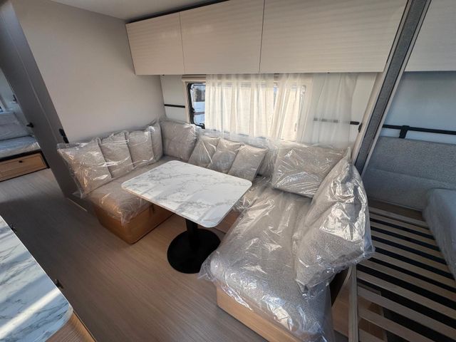 Optionen:Polster Amelia, Fußbodentemperierung Elektrisch, Schwenk Tisch, Sound-System, Transportbox System Gaskasten, Stabilisierungssystem, Umrissbeleuchtung rechts