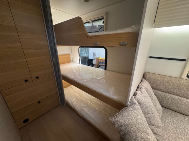 Optionen:Polster Isabella, Fußbodentemperierung Elektrisch, Transportbox System Gaskasten, Leichmetallfelgen, 3.Stockbett, Umrissbeleuchtung rechts