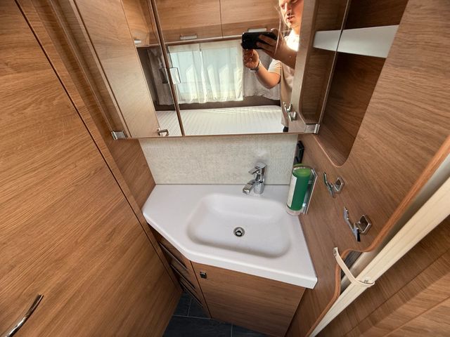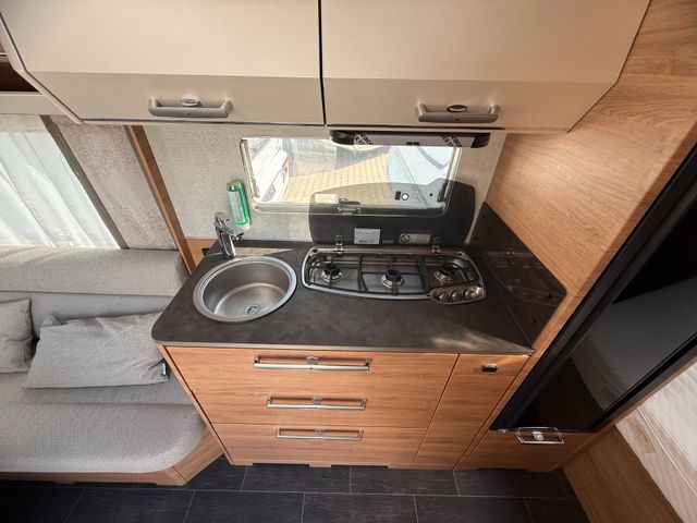 Polster Sunny Medow, Glattblech Weiß, Ambiente Paket DaVinci, Premium Exterieur-Paket, Premium Interieur Paket 1, Design Exterieur-Paket DaVinci, Styling Paket Tabbert, Dunstabzug, Apothekerauszug, Deckenspots LED, Truma Therme, Gasheizung, usw.