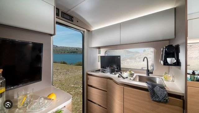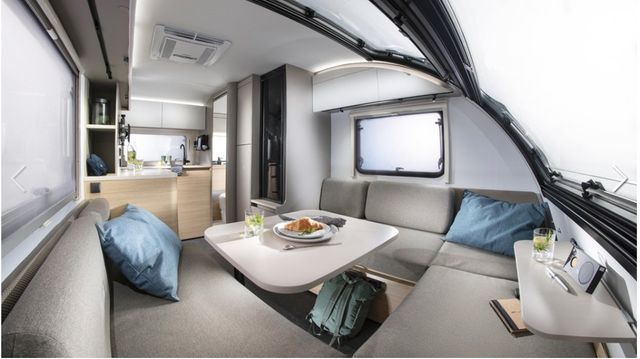 Polster Jade, Fußbodentemp., Heizung Truma Combi4E, Auflastung auf 1.500Kg, Ausziehtisch, Applikation Graphite, Umrissbeleuchtung