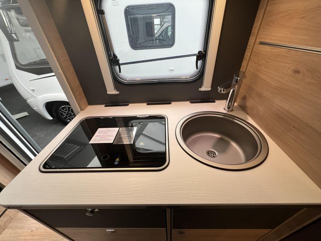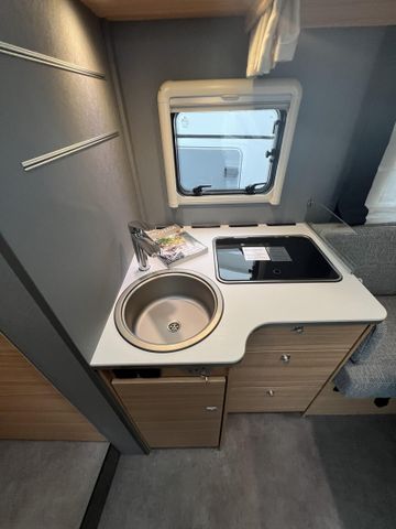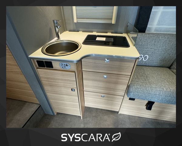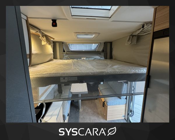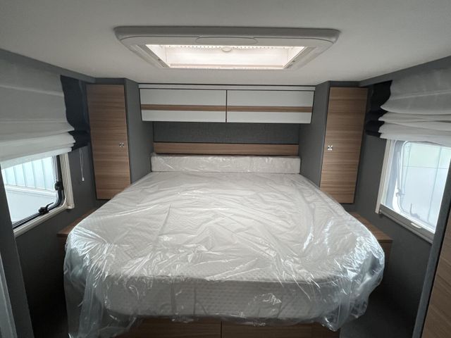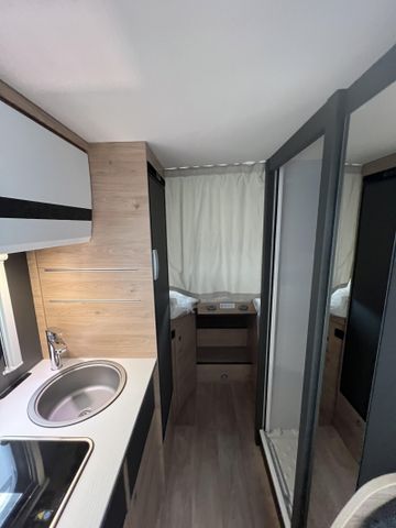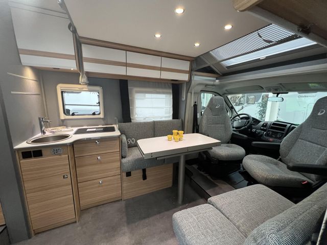 Chassis-Paket (LED Tagfahrlicht, Lederlenkrad und Schaltknauf mit Ledermanschette, Fahrerhaus Klimaanlage automatisch, Multifunktionslenkrad), Vorbereitungskit (Vorbereitung Solar, Vorbereitung Dach-Klimaanlage, Vorbereitung SAT-Anlage, Vorbereitung erste Rückfahrkamera, Vorbereitung zweite Rückfahrkamera), Winterkomfort-Paket Warmluft (XPS Aufbau-Isolierung, Unterbodenleitungen isoliert, Abwassertank und -leitungen elektrisch beheizt, Abwassertank isoliert, Schalter für Wasserpumpe, Gas Warmluftheizung 6 kW mit 1,8 kW Elektroheizstab und Warmwasserboiler inkl. digitalem Bedienelement), Wohnwelt Metropolitan, Automatische Gasflaschenumschaltung inkl. Crash Sensor, EisEx und Gasfilter, Alufelge Citroën 16 Zoll, Bi-Color, Doppelverglaste Rahmenfenster mit Verdunklung & Mückenschutz, elektrisches Hubbett über der Sitzgruppe, Fenster zusätzlich im Badezimmer