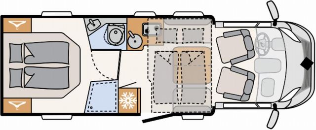 Seitensitzgruppe, Dusche, WC, Heckgarage, Festbett,